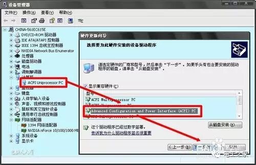 更新驅動 :右鍵點擊【我的電腦】→管理→設備管理器→計算機→右鍵點擊【ACPIUniprocessor PC】→更新驅動程序→從列表或指定位置安裝(高級)→下一步→不要搜索我要自己選擇要安裝驅動程序→下一步→選中【Advaanced Configuration and Power Inerface(ACPI)PC】→下一步,直至完成設備驅動更換結束 。