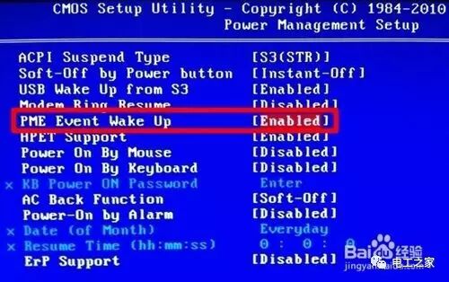 在電源管理菜單中 ,PME Event Wake up(PME事件喚醒)應為Disable(禁用)即可。